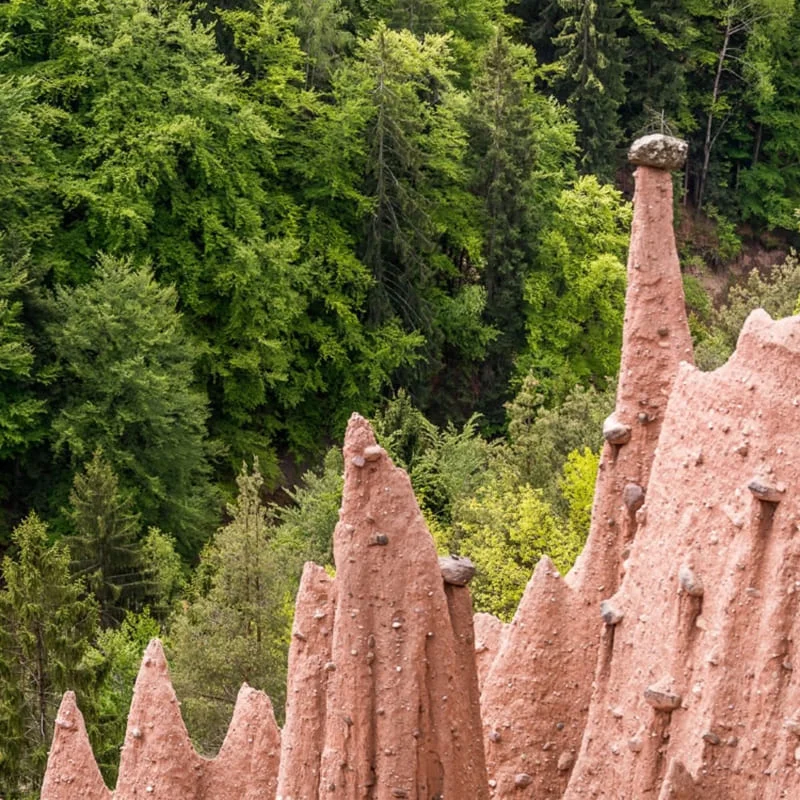 Über die bizarren Erdpyramiden auf dem Ritten staunen, die 20 Meter in den Himmel ragen.