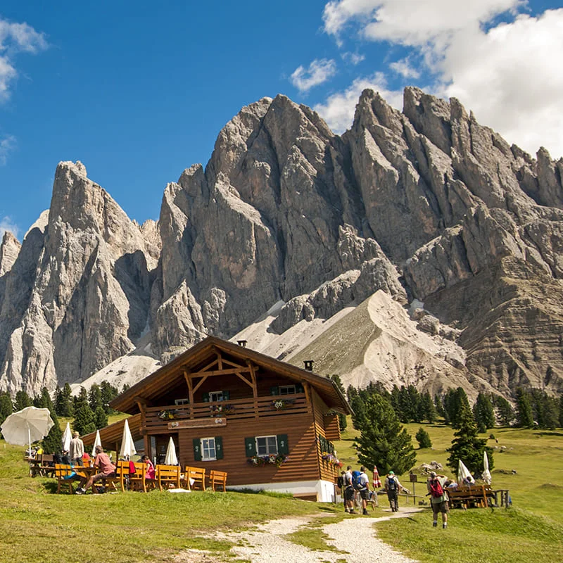 Die markanten Villnösser Geisler bestaunen und zu einer Almhütte wandern.